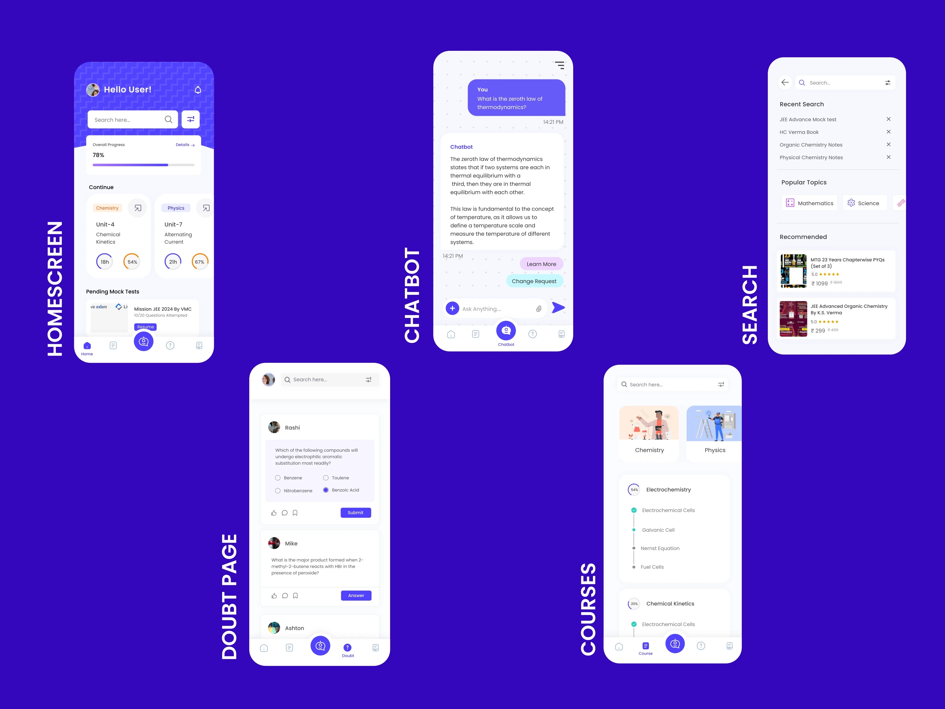 Contextual Navigation: Designed interconnected features where users can seamlessly move from course content to doubt clearing to reference books