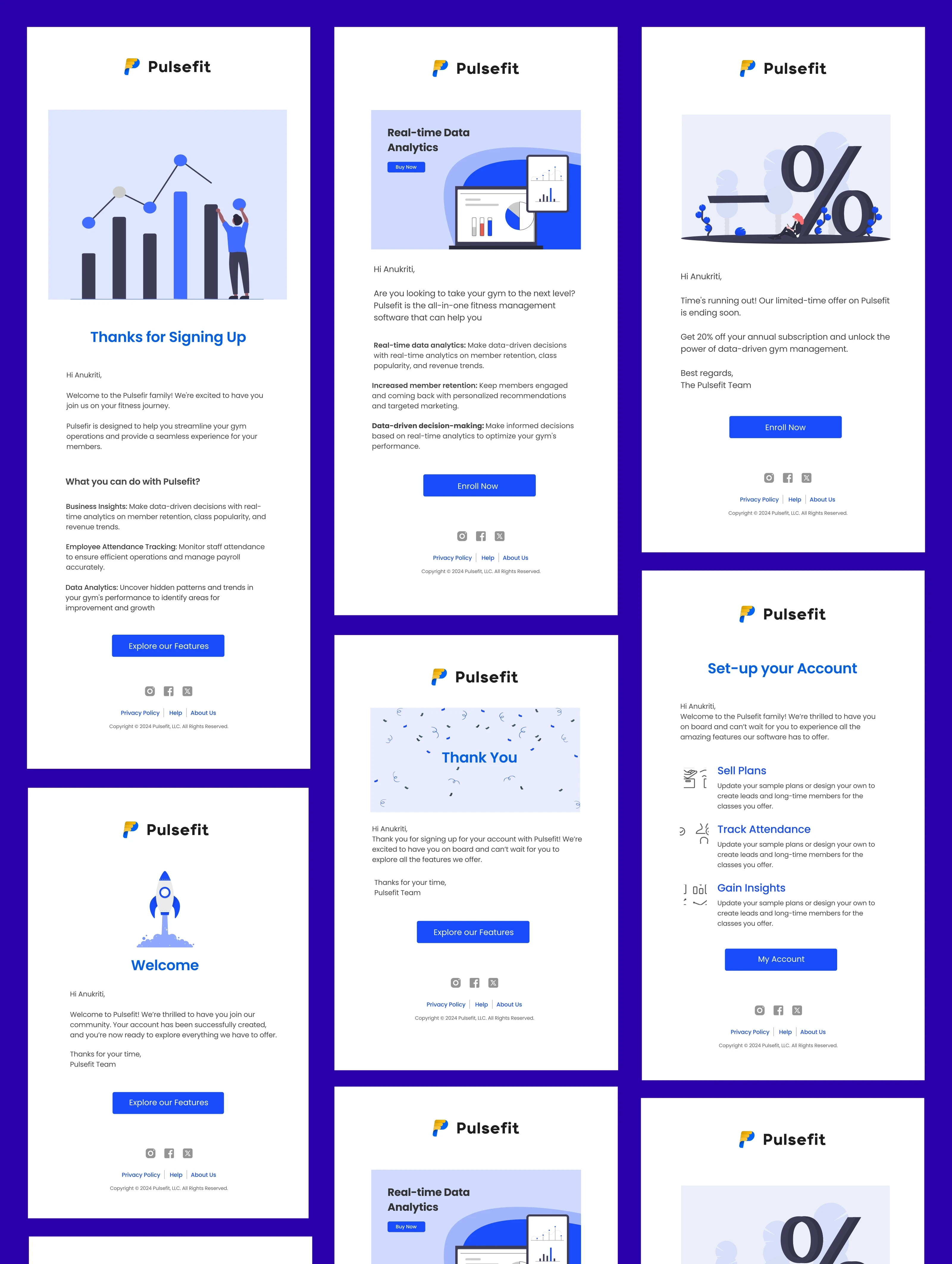 I worked email campaigns for Pulsefit, a SaaS platform helping gym owners manage their fitness business.